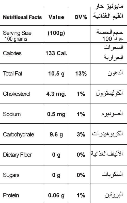 مع تركيبة طبيعية 100%، خالية من السكر المضاف، زيت الصويا، والزيوت المهدرجة – صار بإمكانك الاستمتاع بالنكهة الغنية من غير ما تتنازل عن صحتك. استخدمه كصلصة للسلطات، أو إضافته للسندويتشات، أو كبهار جانبي لأطباقك المفضلة.